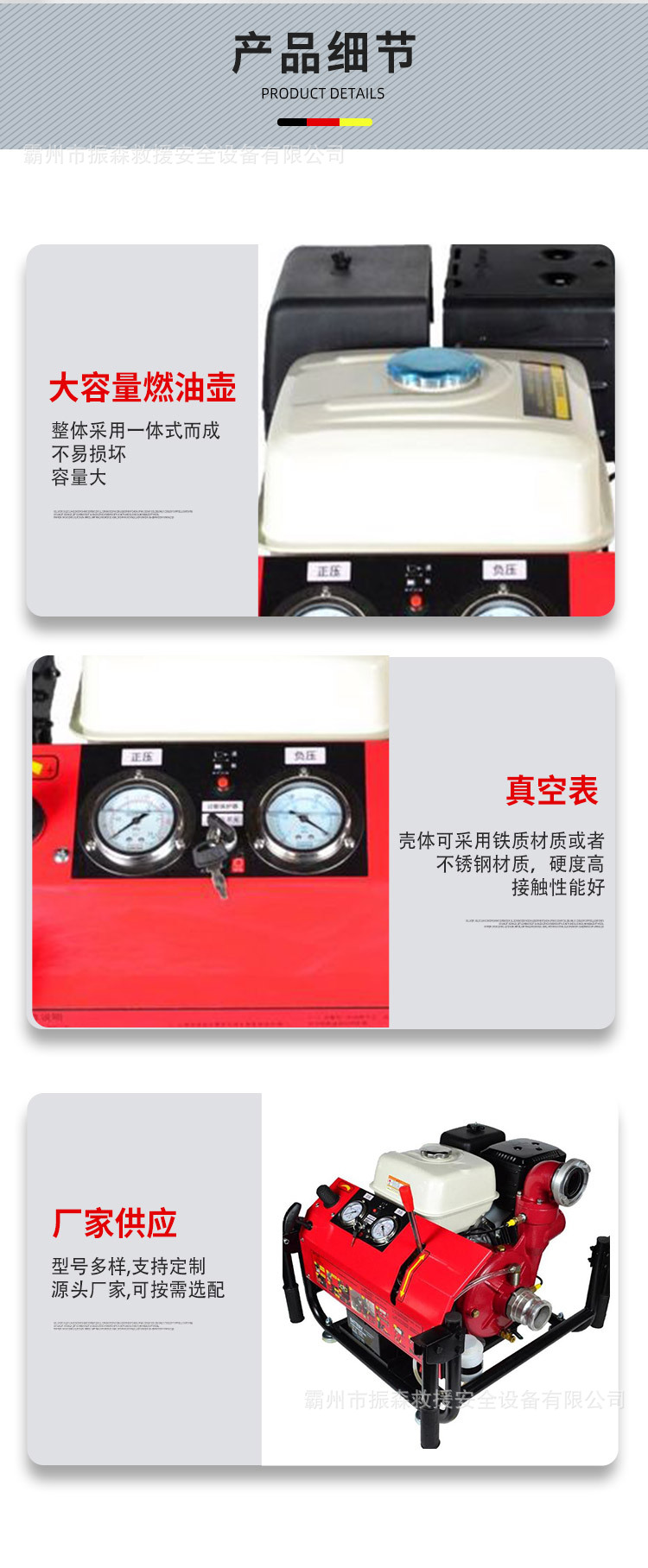 产品配件 防快接1只,塑料底阀1只,强力喉箍2只,充电器1个 出口木箱包装