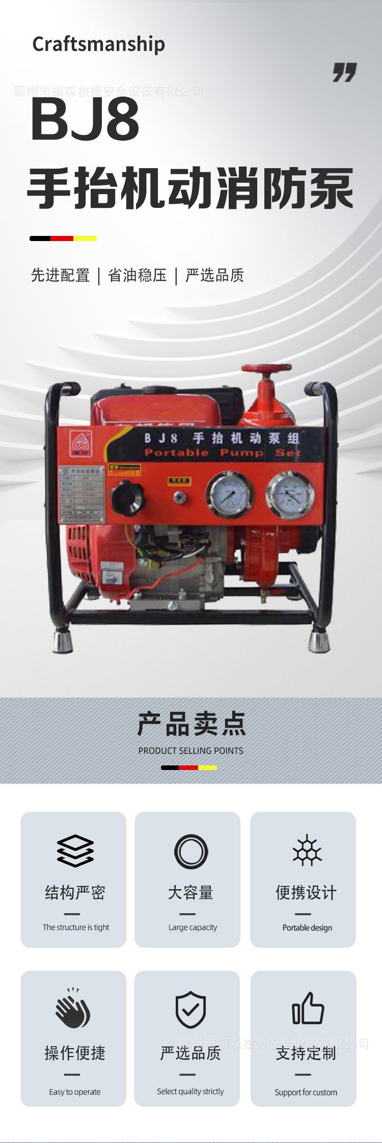 手抬机动消防泵BJ8四冲程风冷高压泵园林灌溉自吸泵园林灭火泵