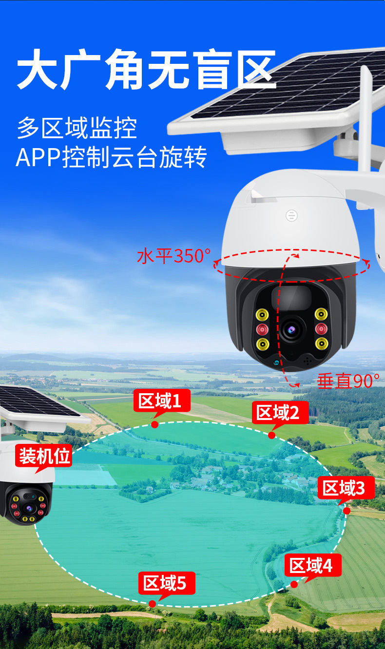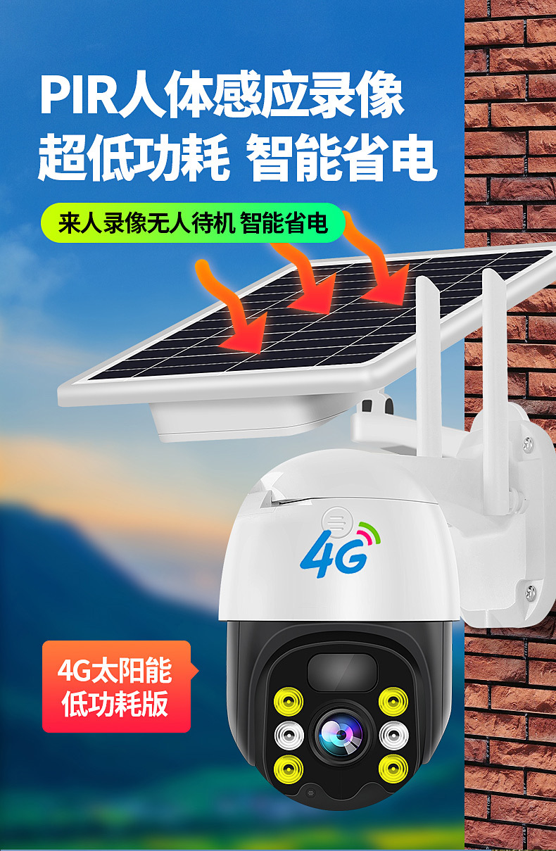 太阳能4g插卡监控摄像头无线网络防水探头手机远程高清夜视监控器