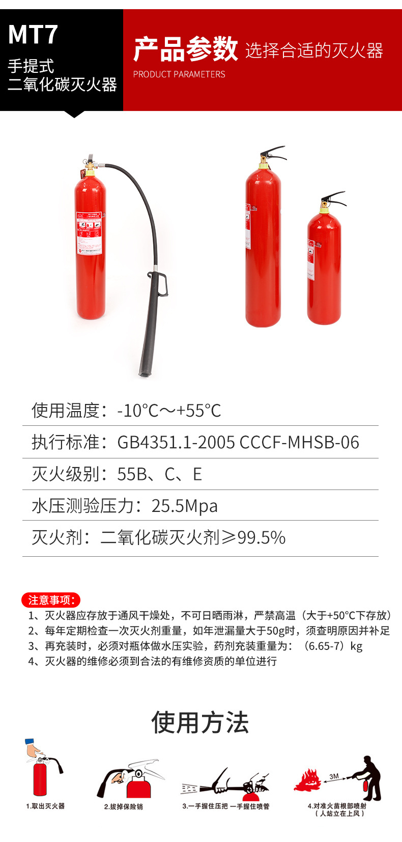 MT7手提式二氧化碳灭火器家用消防灭火器工厂仓储7kg灭火器材批发