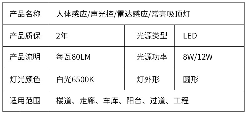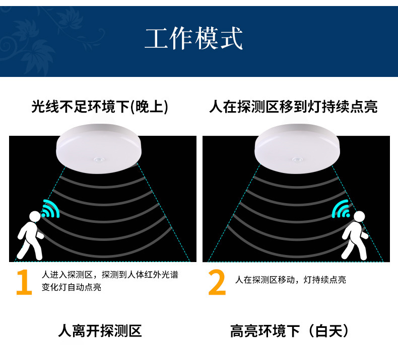 红外线人体感应灯声光控雷达超薄三防楼道改造圆月吸顶灯智能灯具