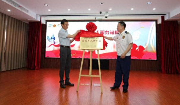 8月25日上午,长宁区退役军人事务局和长宁区消防救援支队共同为退役军人服务站揭牌,“情暖火焰蓝退役军人服务承诺”也同时发布。