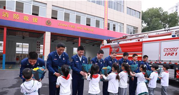 最后孩子们向消防救援人员献上鲜花并合影留念。