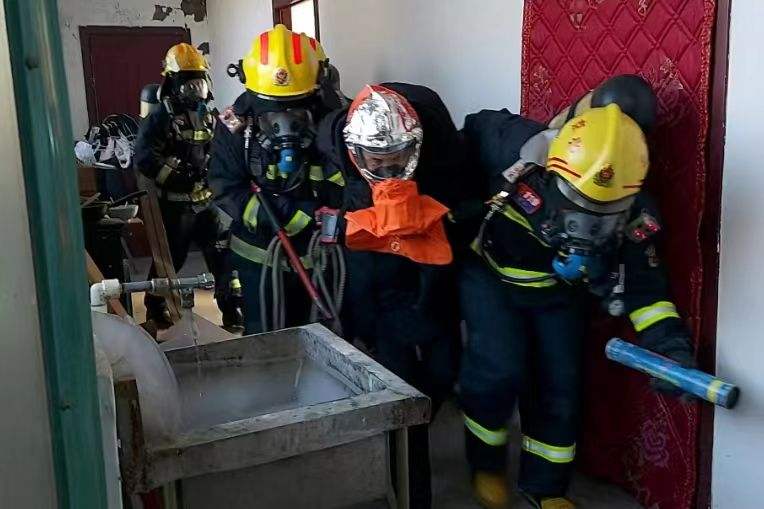 密云消防开展村民自建房灭火救援联合实战演练。图源:密云区消防救援支队