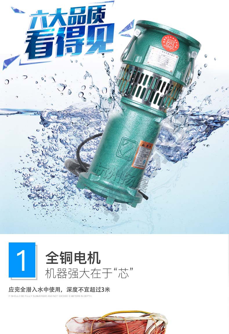 3、电泵应在额定扬程范围内并应全潜人水中使用,潜入水中深度不易超过三米,最深不超过5米。