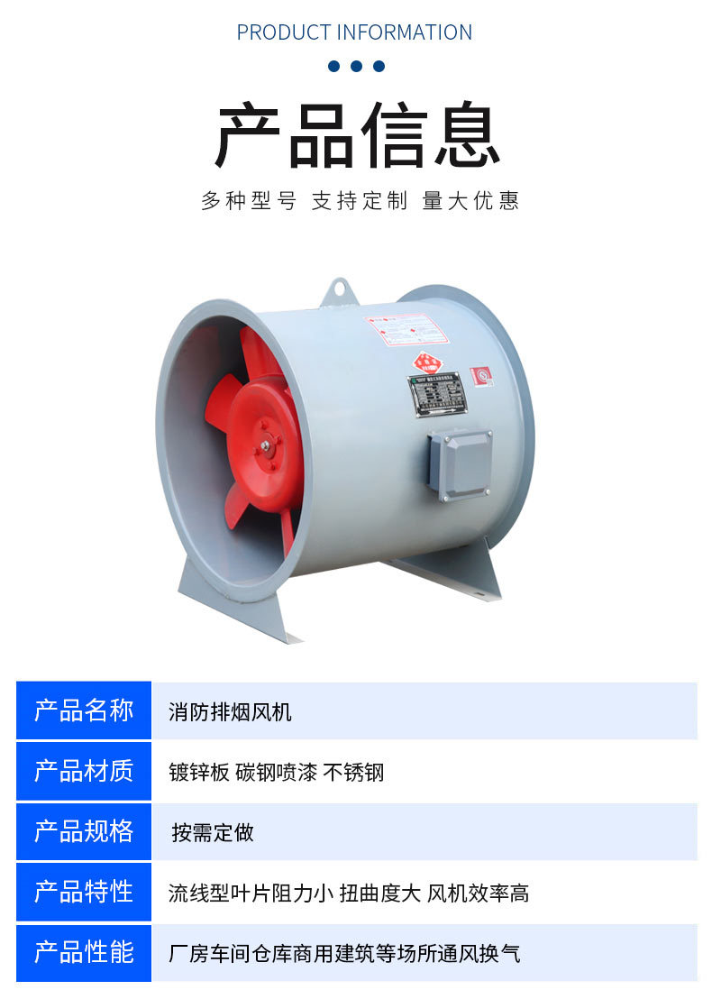 低噪音大功率管道工业轴流消防排烟风机厨房家用厂房消防排烟风机