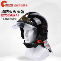 欧式双层镜面头盔双层防护镜消防灭火头部防护帽子F1消防头盔全盔