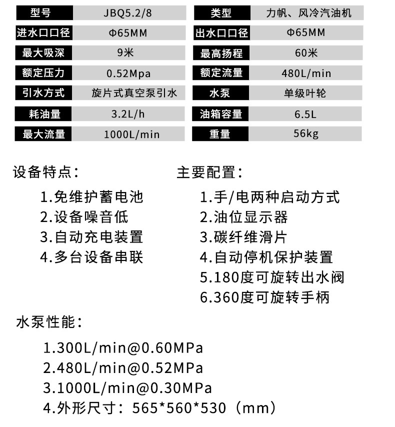JBQ5.2/8手抬式机动消防泵移动式高扬程高压泵森林应急救援抽水泵