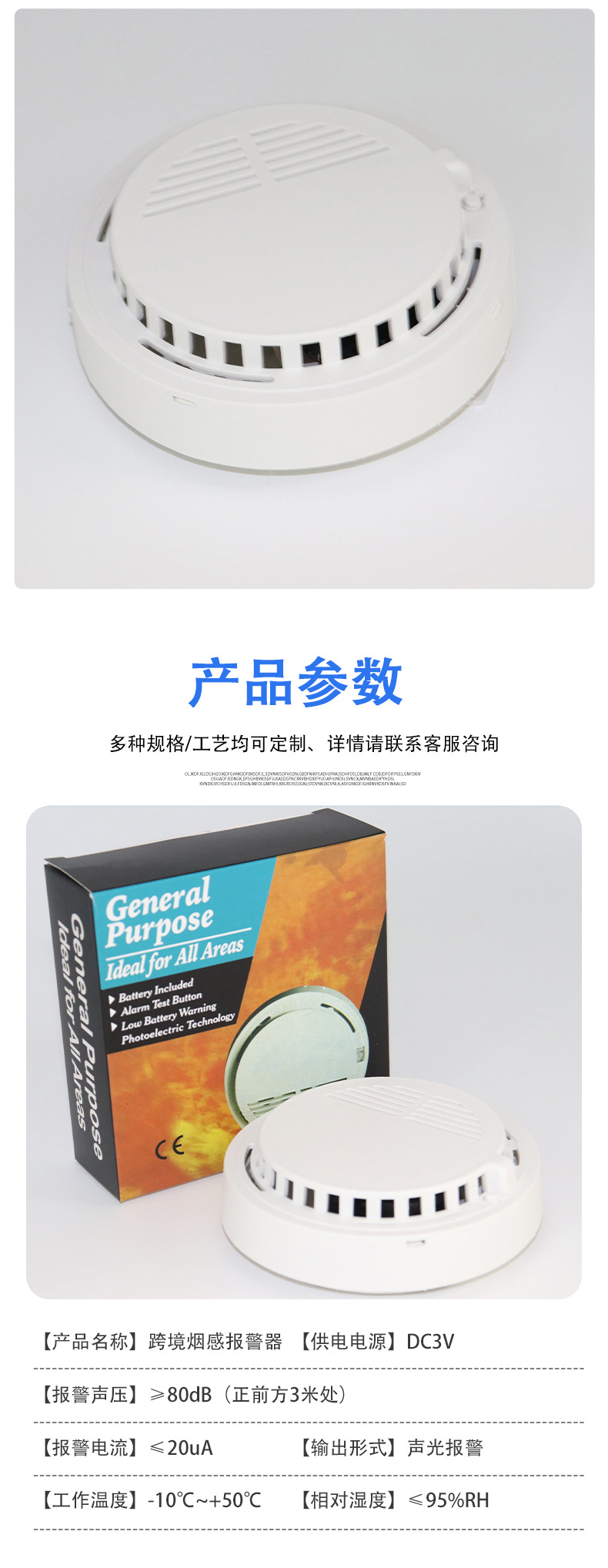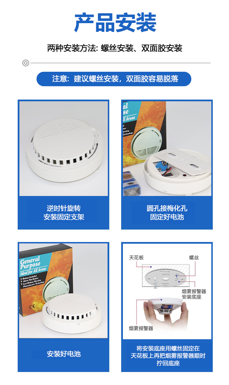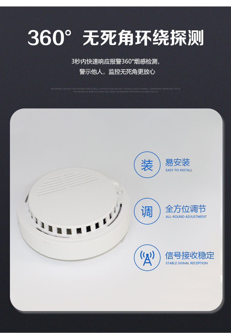 跨境烟感报警器无线感应烟雾报警器公共场所探测器烟感警报器