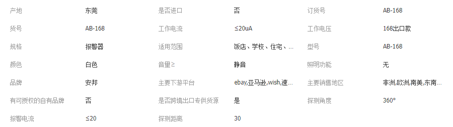 | 主营产品或服务 | 其他报警器 报警探测器 服务商品 | ||