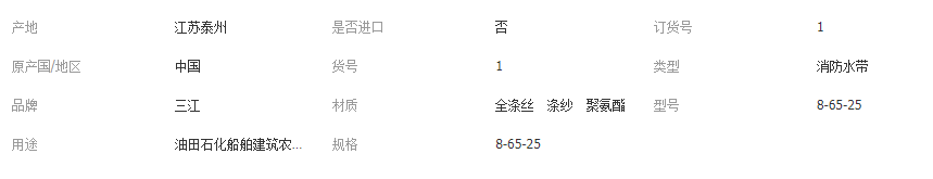 三江沱雨牌聚氨酯消防水带8-65-25工程用水带有衬里消防水带厂家