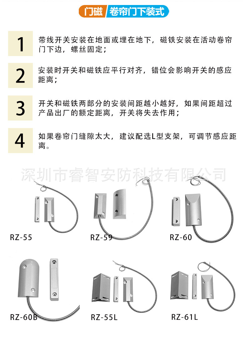 RZ-3019 TUYA 涂鸦车库门开关专用门磁 门磁报警器 5米线长