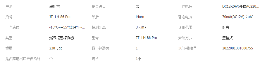豪恩JT- LH-86 Pro有线煤气液化气可燃气体泄漏探测器报警器新款