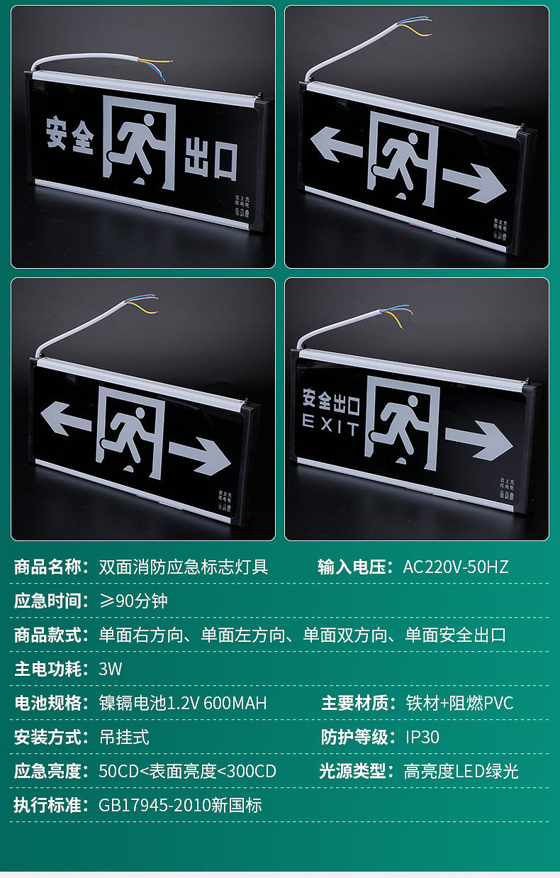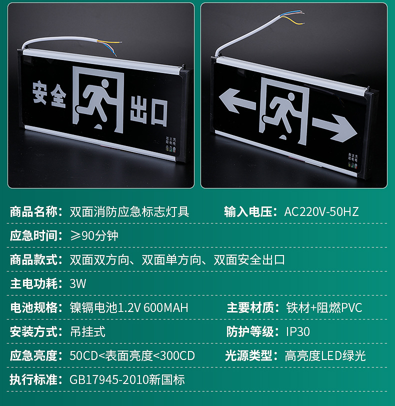 LED安全出口指示灯 疏散出口指示牌消防应急标志灯单向疏散指示灯