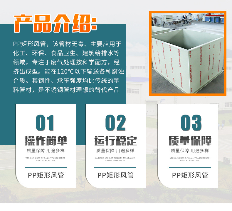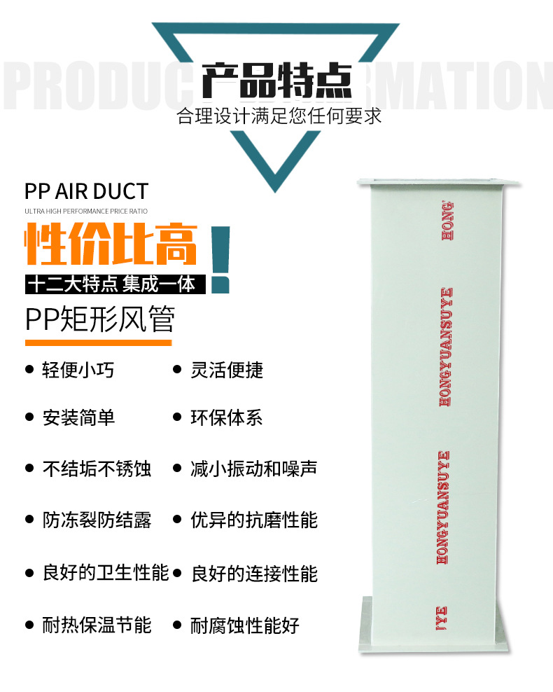 PP/PVC矩形风管大口径阻燃风管废气净化防腐通风管pp矩形风管