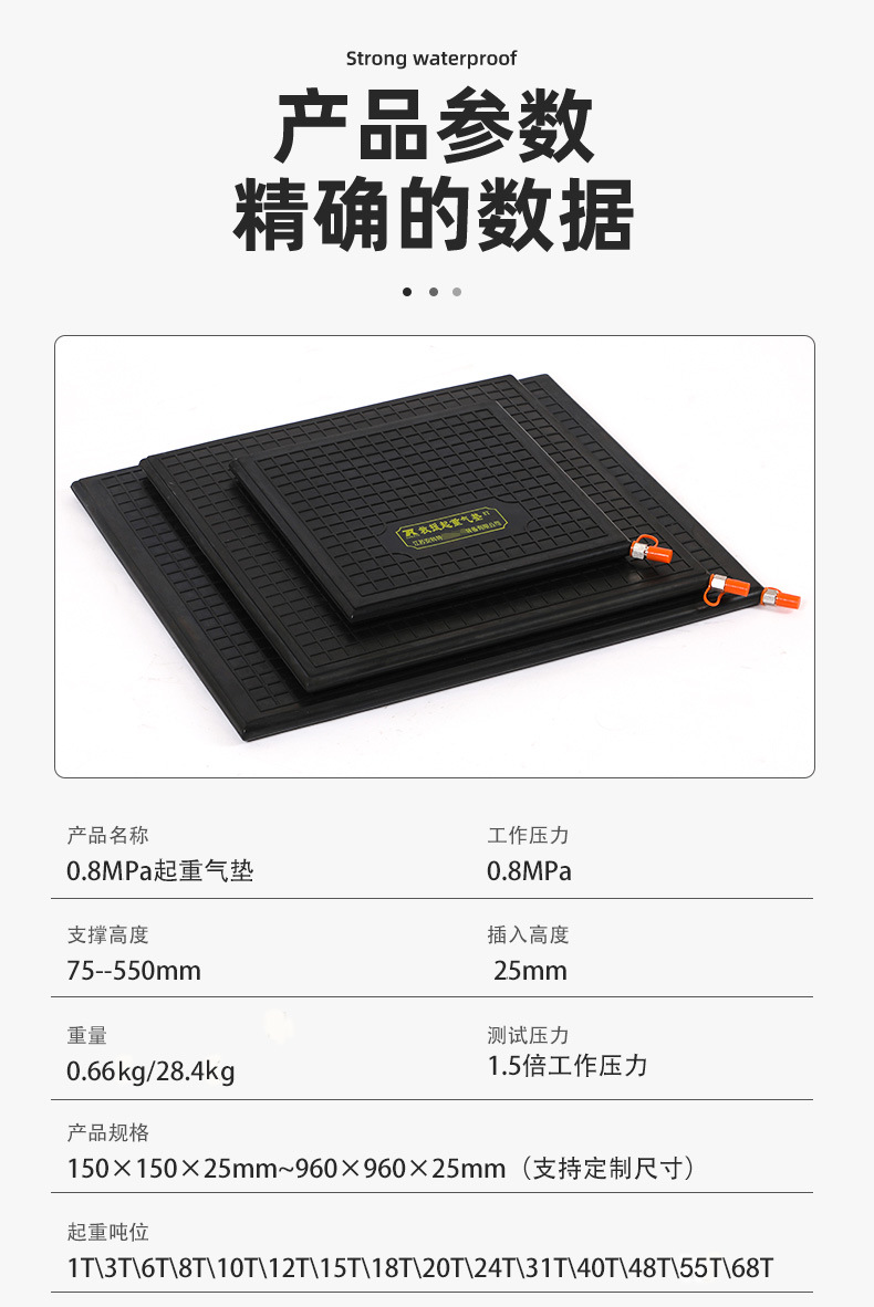 0.8Mpa救援橡胶起重气垫气动道路桥梁倒塌气动方形支撑垫