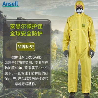 安思尔2300防护服连体隔离服 化工实验服 微化服 带帽连体隔离服