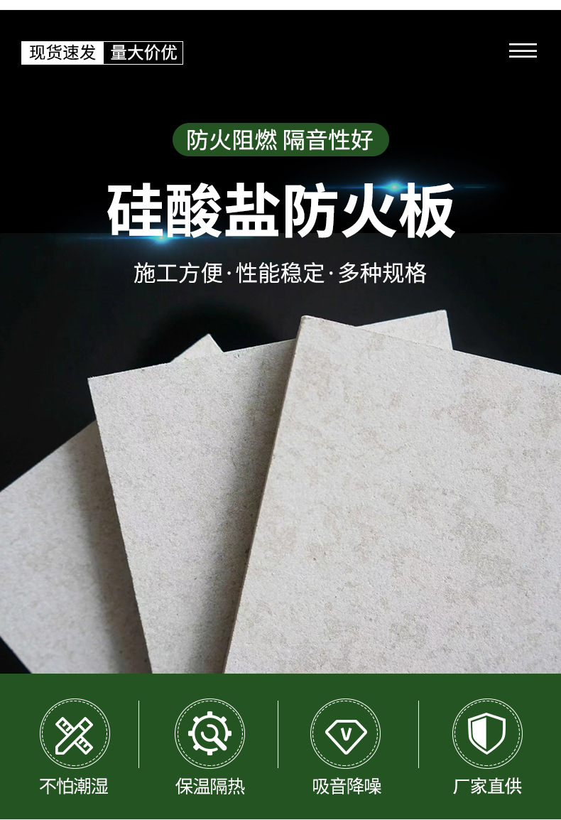 现货供应硅酸盐防火板9mm硅酸钙板隔墙板纤维增强硅酸钙板防火墙