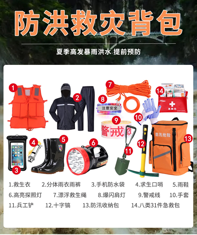 防汛抢险应急包物资防洪水灾雨季巡防救生汛期装备消防救援应急包