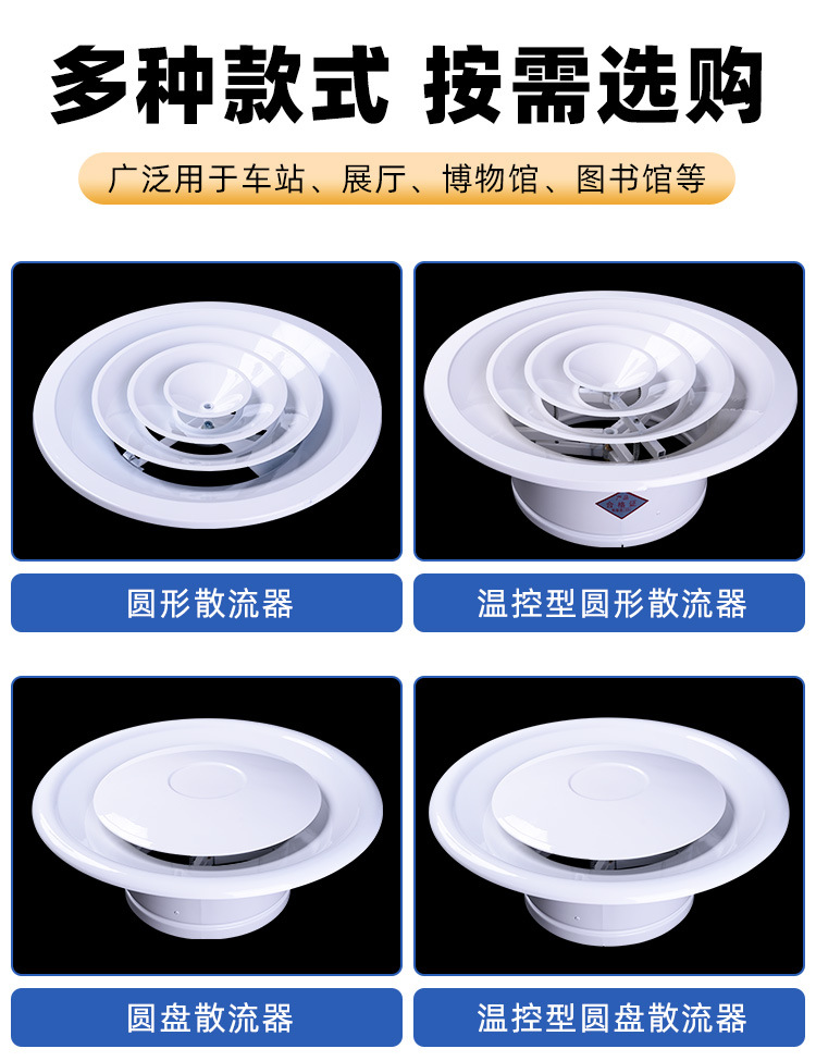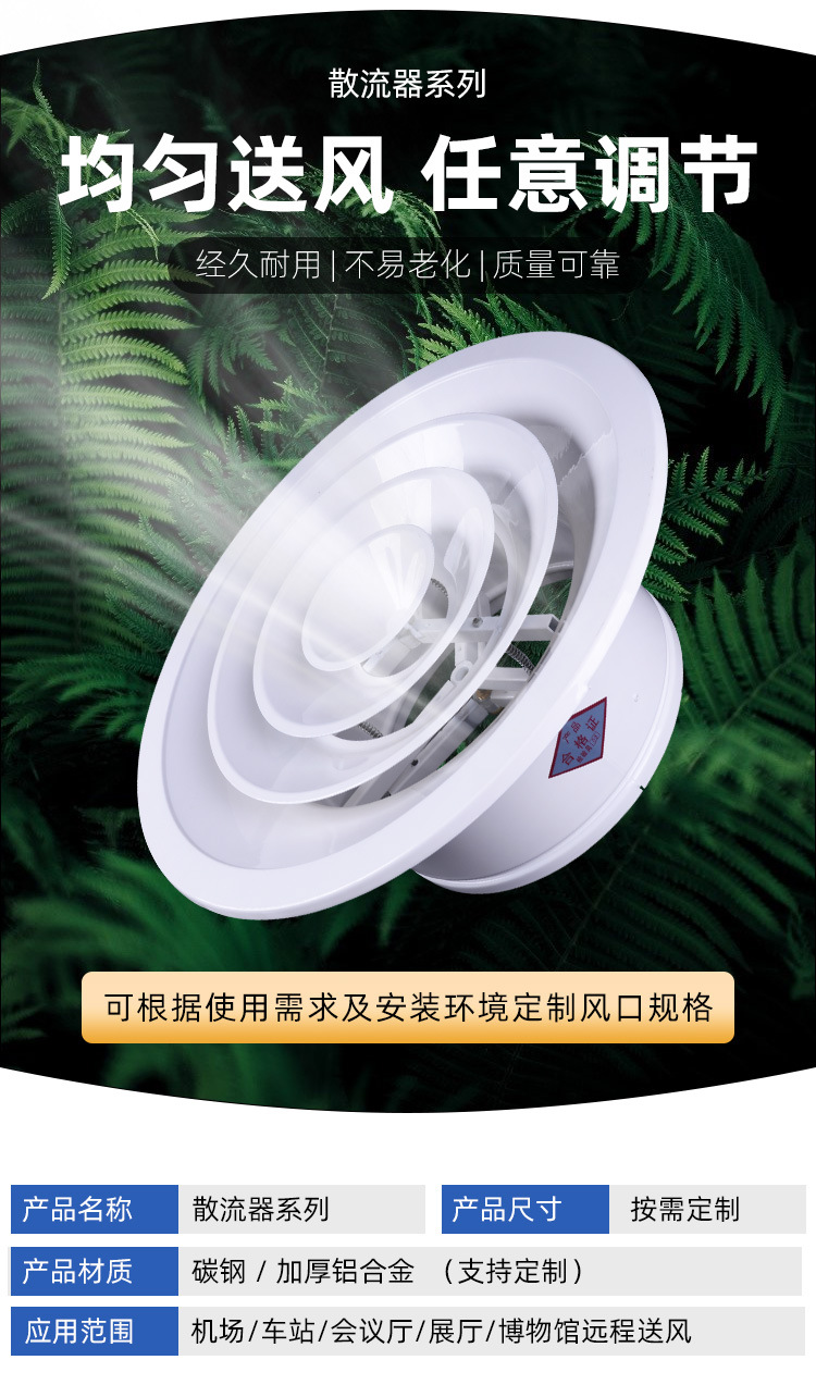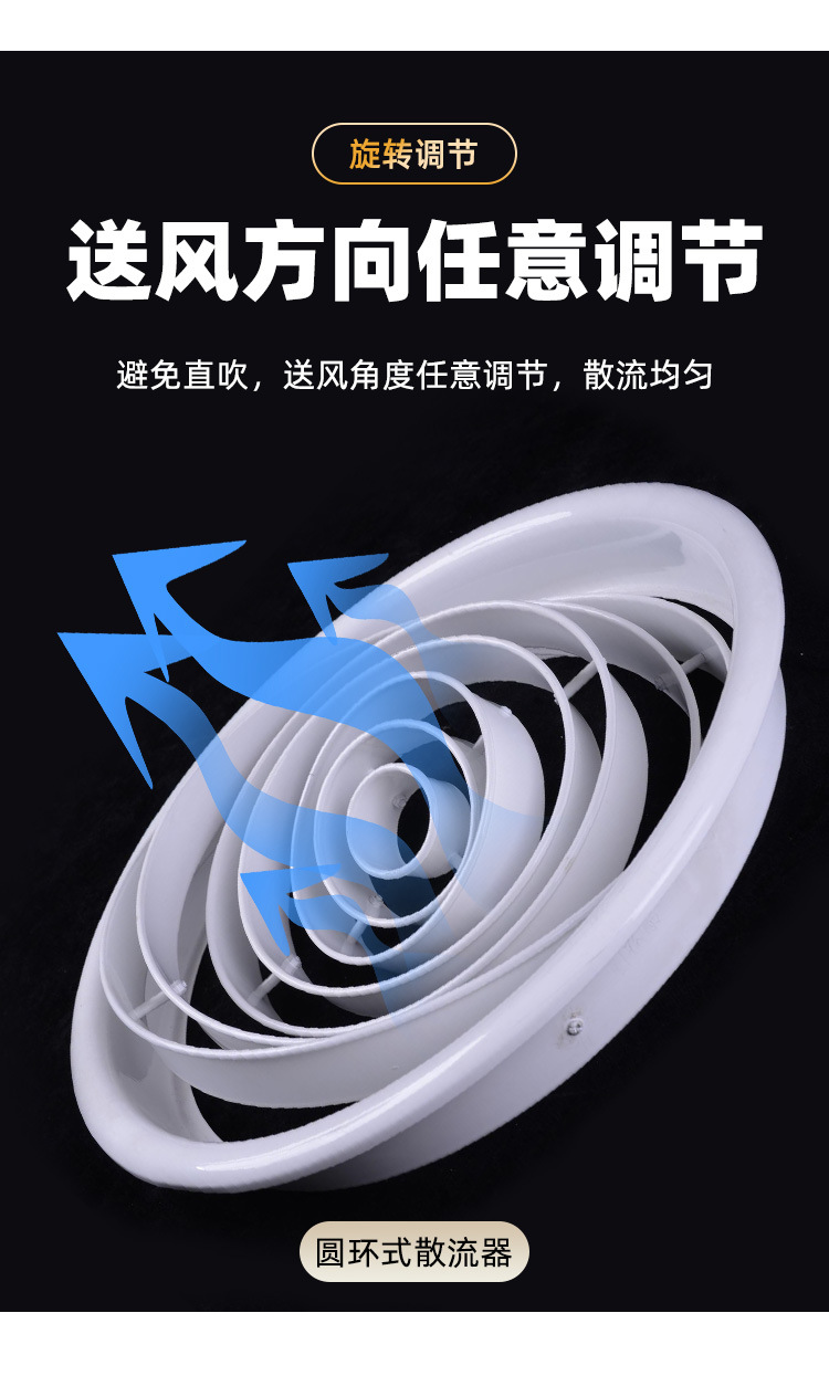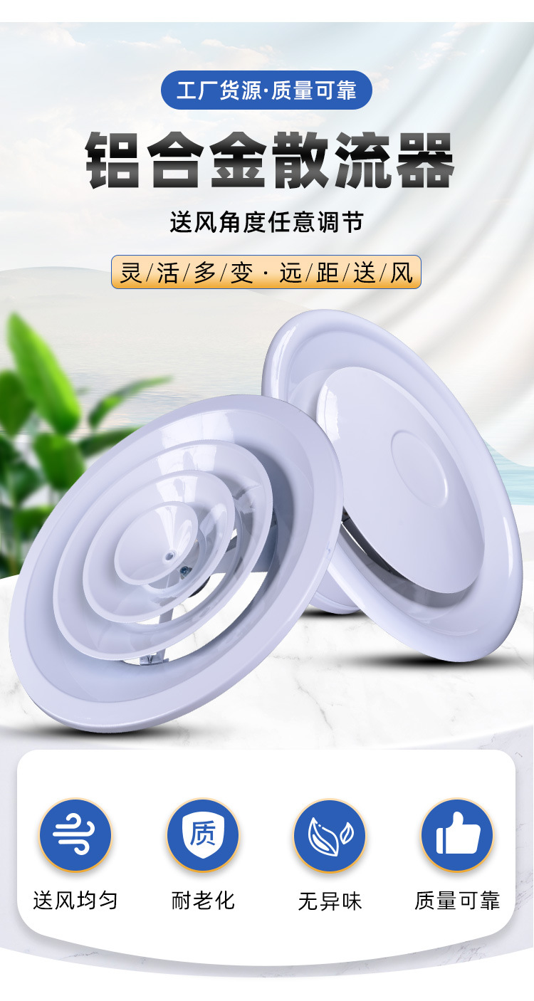 新风系统中央空调双层圆形散流器塑料通风口可调节风量出风散流器