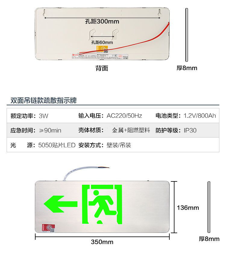 led安全指示灯疏散指示牌标志灯灯具消防应急照明灯应急灯批发
