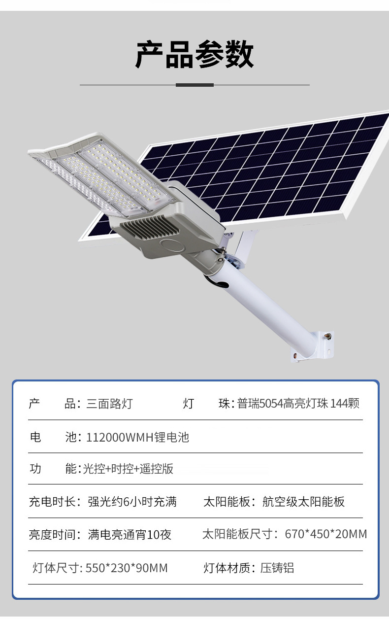 太阳能户外灯路灯庭院三面广角家用农村超亮大功率LED照明道路灯