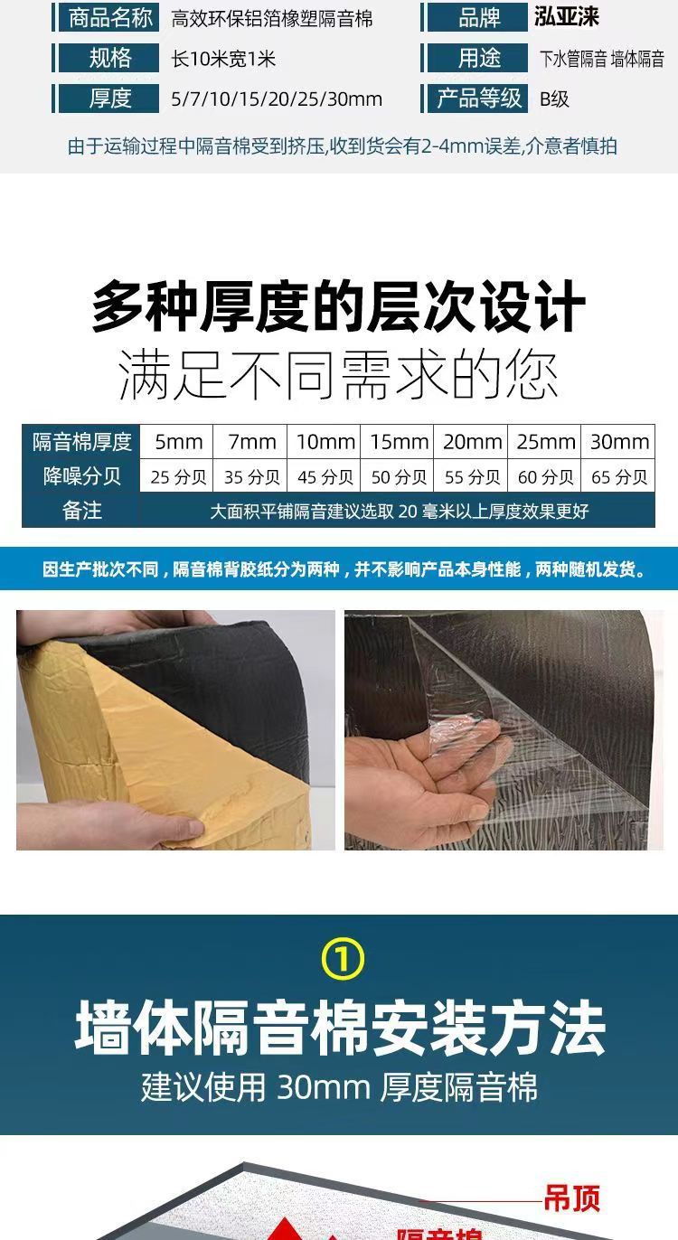 下水管隔音棉自粘家用墙体隔音板室内消音超强吸音棉隔音毡静音棉