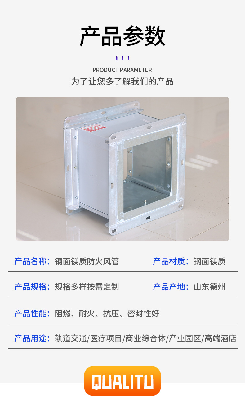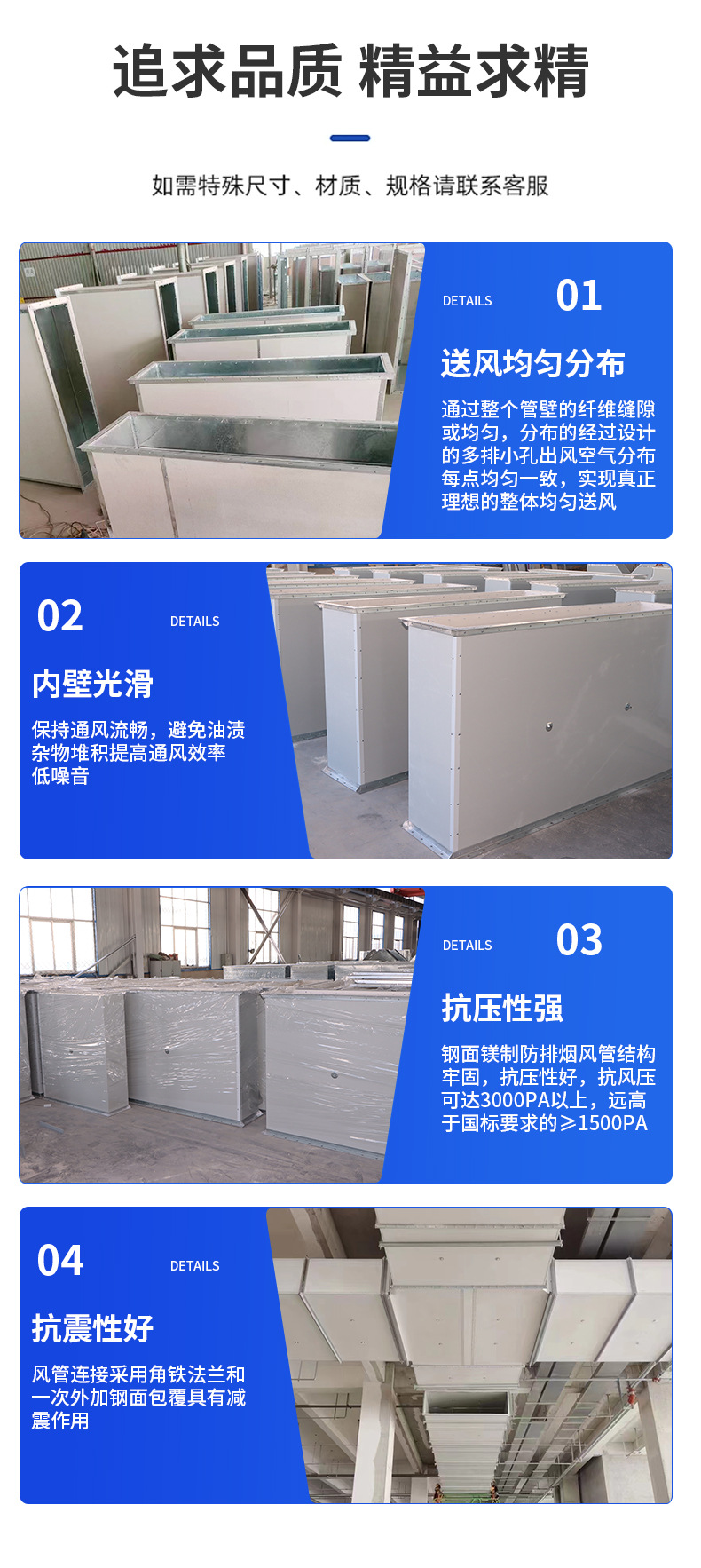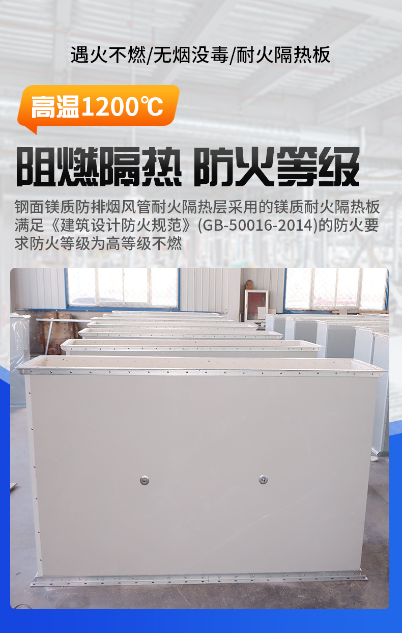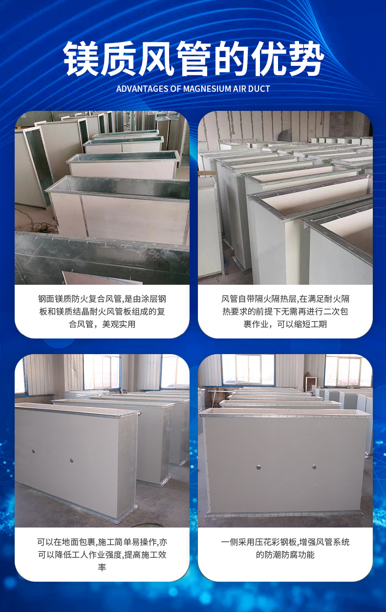 工厂货源钢面镁质排烟风管消防排烟耐火风管彩钢板复合防火风管