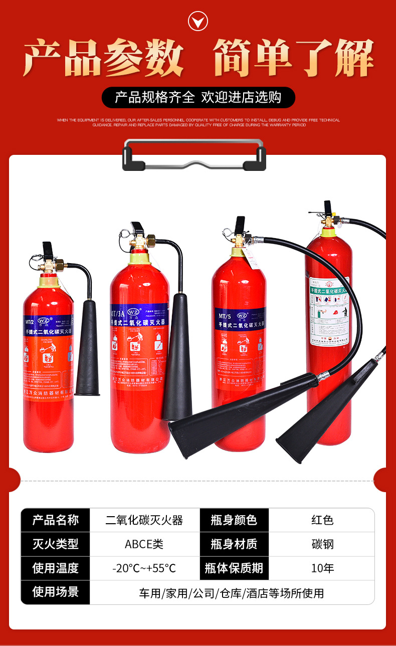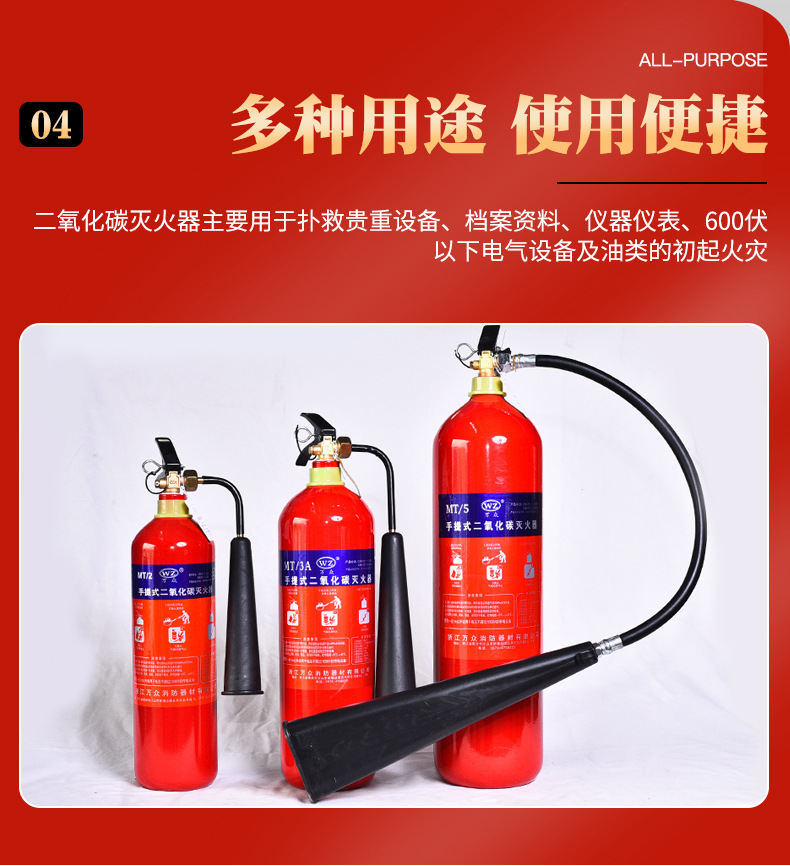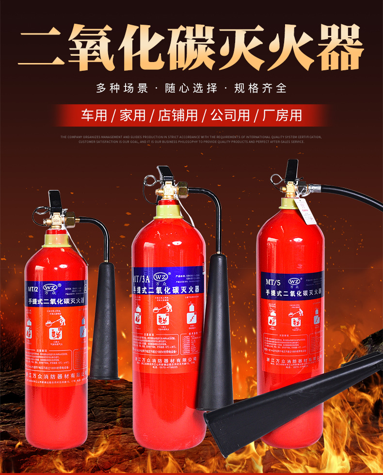 手提式气体灭火器 家用车用工厂用消防用灭火器材 二氧化碳灭火器