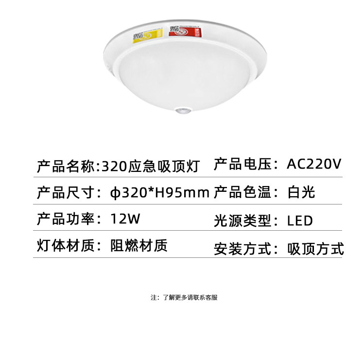 应急吸顶灯声控人体感应面包灯楼道走廊长续航消防应急照明吸顶灯