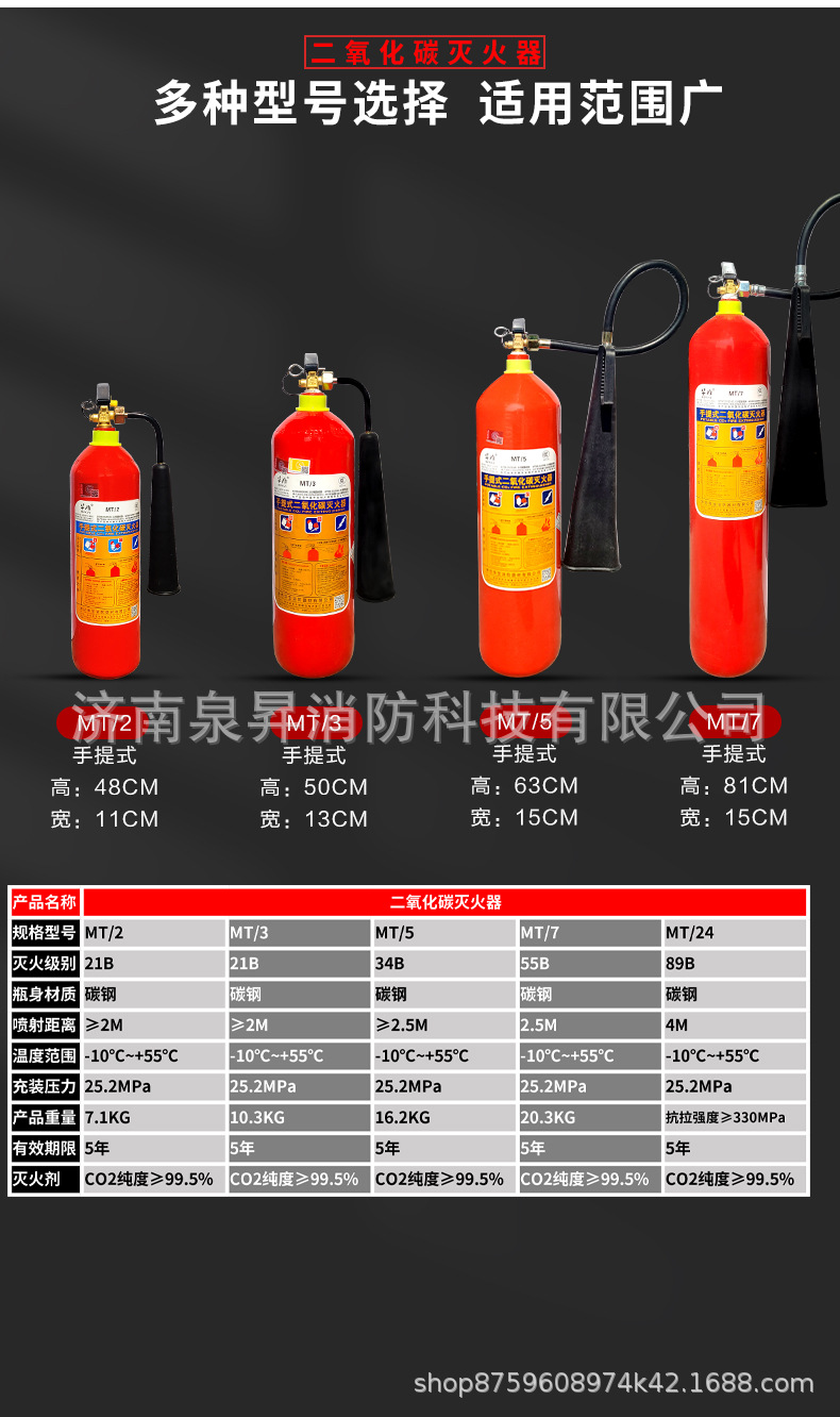 华宝绿消MT/2KG3KG5KG7KG24气体干冰CO2手提推车式二氧化碳 灭火器