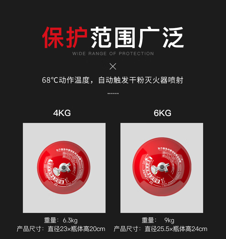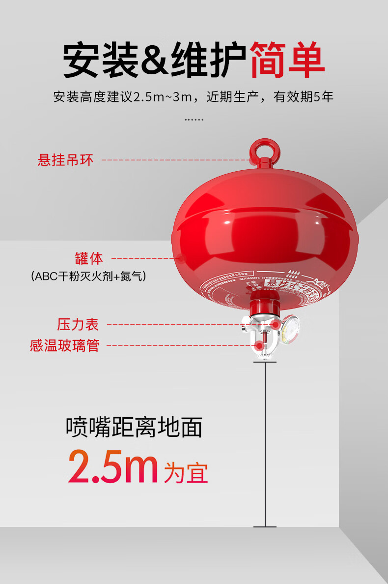 华宝小型吊装灭火球自动感温灭火装置4KG6KG8KG悬挂干粉灭火器