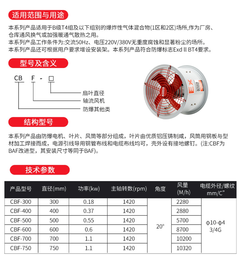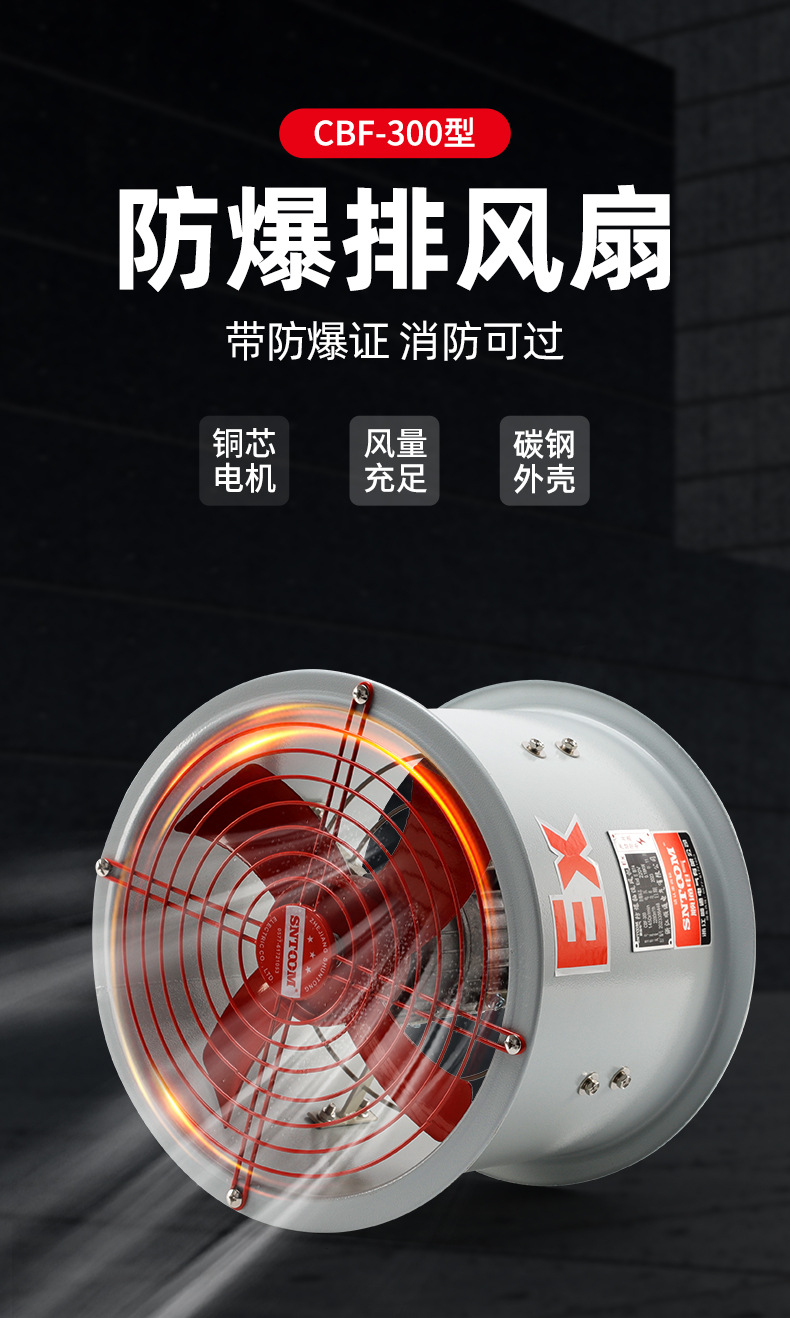 防爆轴流风机CBF-300强力工业排风扇CBF-500 400管道式轴流通风机