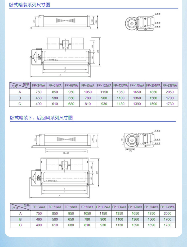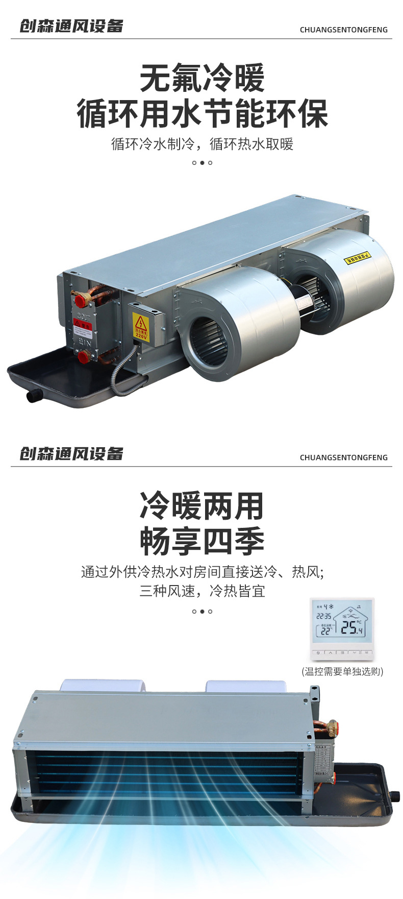 卧式暗装风机盘管煤改电酒店宾馆水空调大风量静音冷暖风机盘管