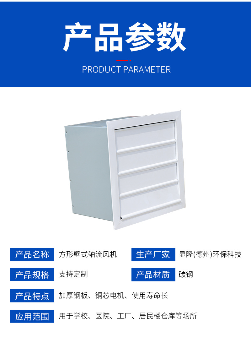 厂家管道轴流壁式边墙风机低噪音工业车间通风方形边墙风机