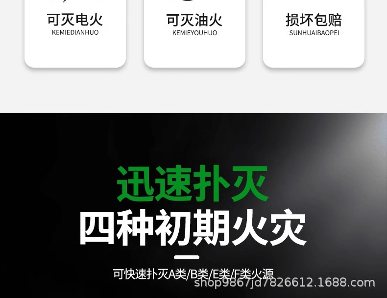新型水基灭火器6升泡沫绿色手提式2L/3L/9L/车用商铺消防器材批发
